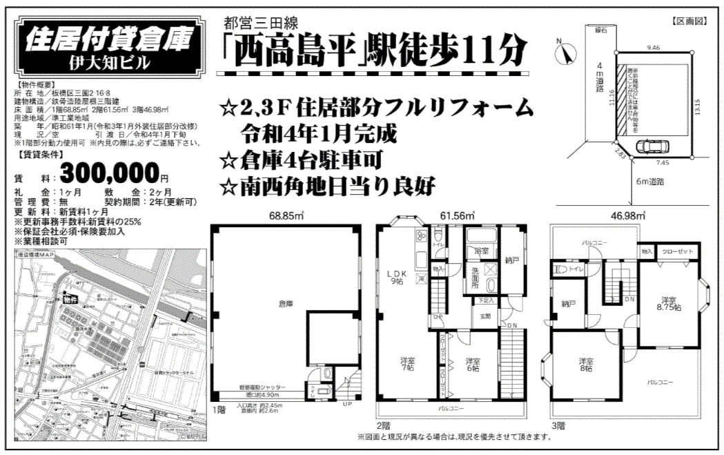 *2,3階は住居仕様 *倉庫内高さ約2.6m |