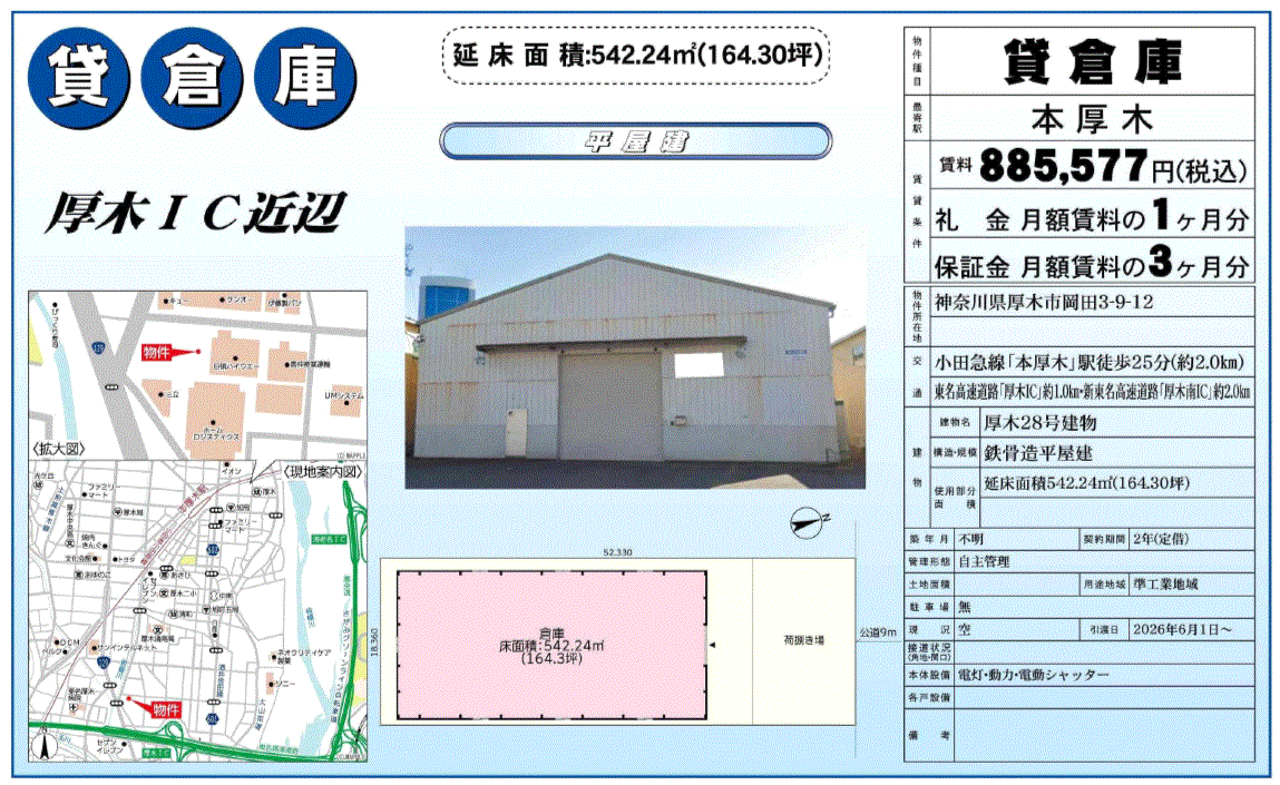 | 物件番号 | 2601216 | 物件種目 | 倉庫 |