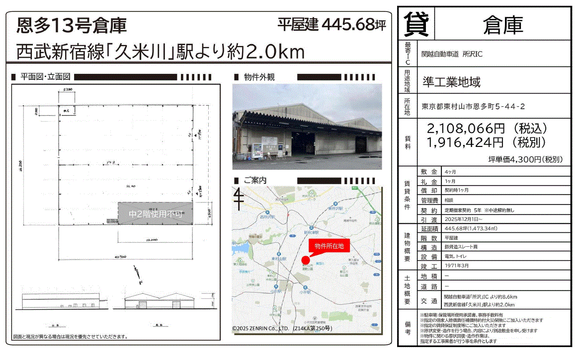 建物面積 | 1,473.34m²/445.69坪 | 構造/階数 | 鉄骨造/平家建 |