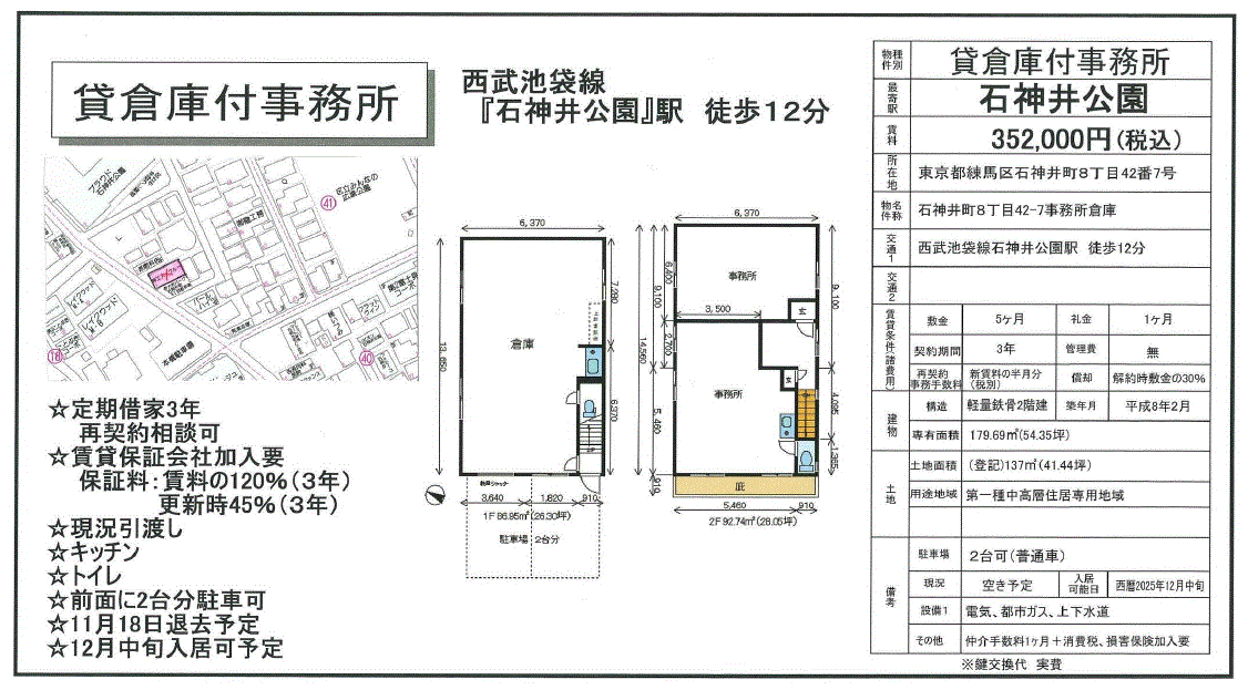 | 沿線/駅 | 西武池袋線/石神井公園駅 徒歩12分 | 高速道路出入口 | |