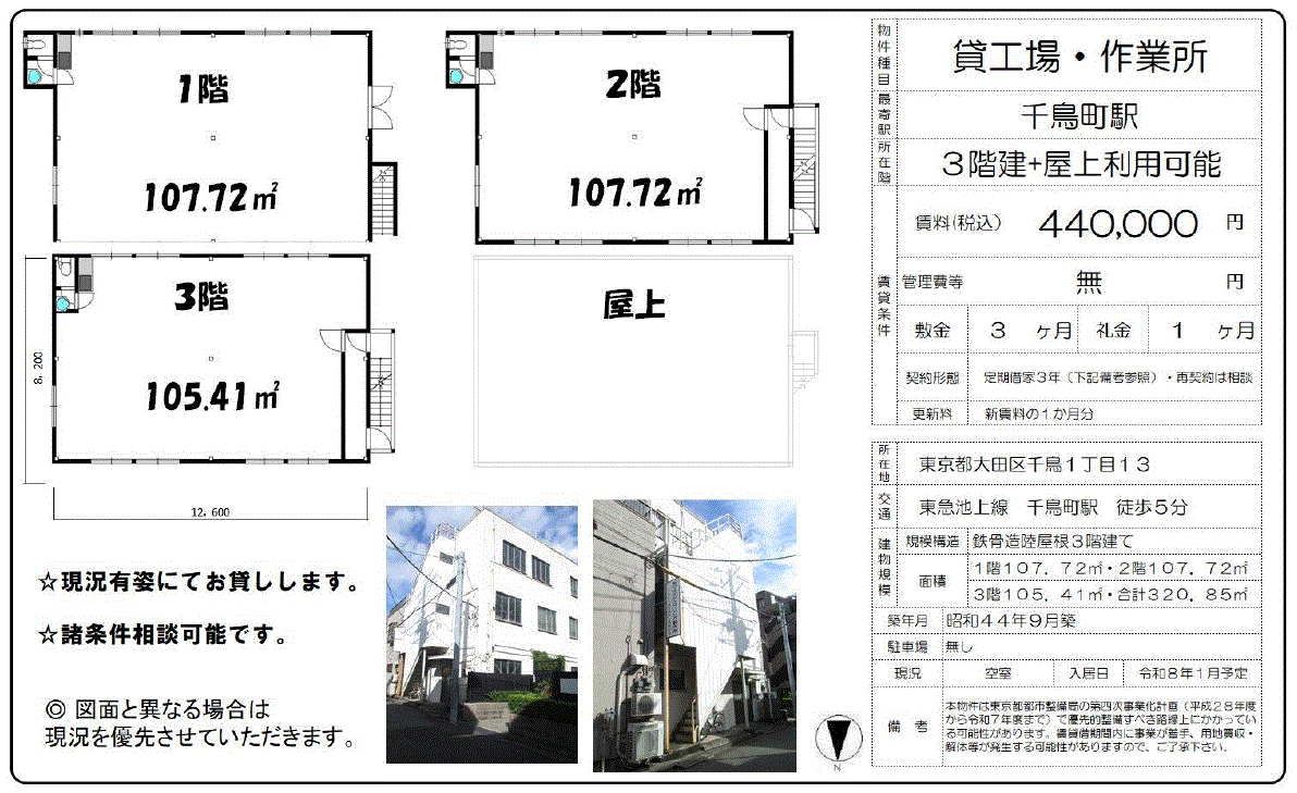 *3年定期建物賃貸借契約(再契約相談可) *再契約料:新賃料の1ヶ月分 *現況有姿 |