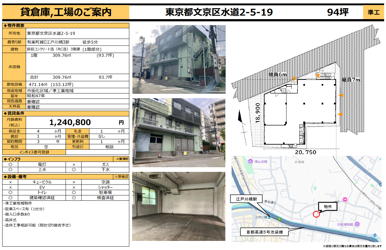 | 沿線/駅 | 有楽町線/江戸川橋駅 徒歩5分 | 高速道路出入口 | |