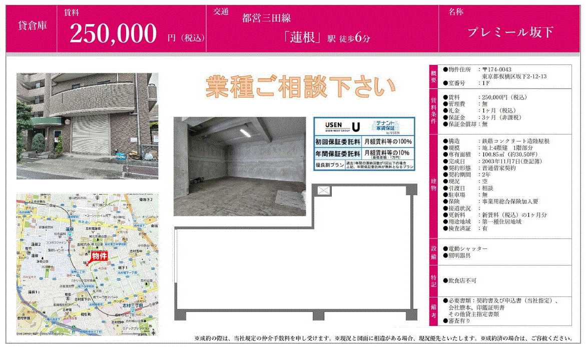 飲食店不可 |