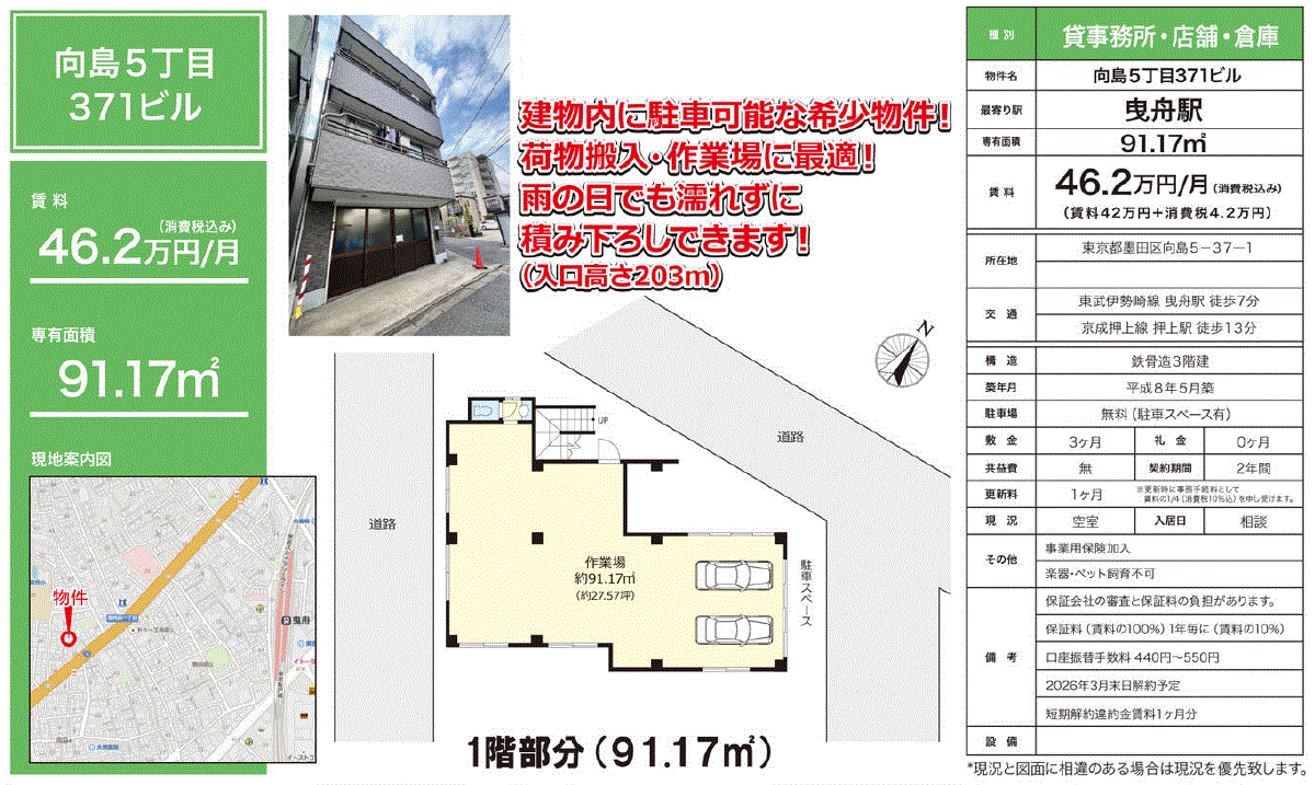 | 沿線/駅 | 伊勢崎線/曳舟駅 徒歩7分 | 高速道路出入口 | |