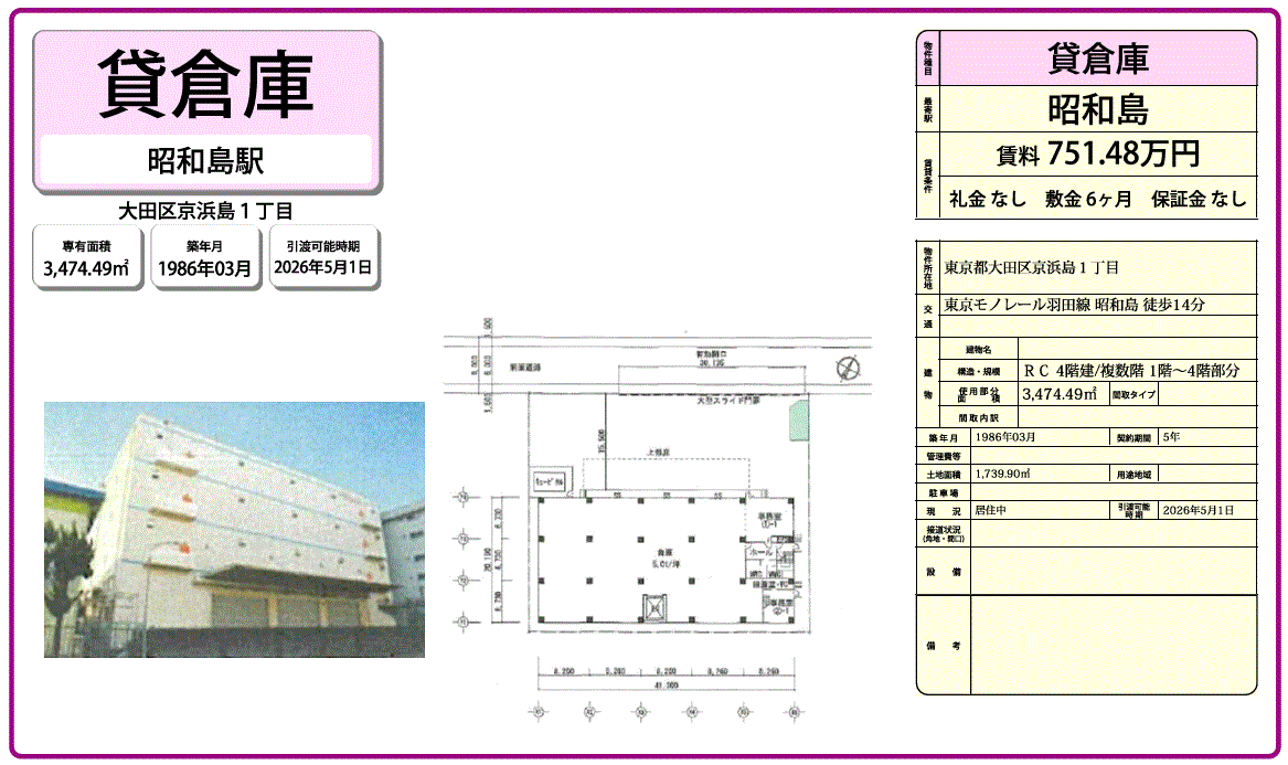 | 物件番号 | 3117276 | 物件種目 | 倉庫 |