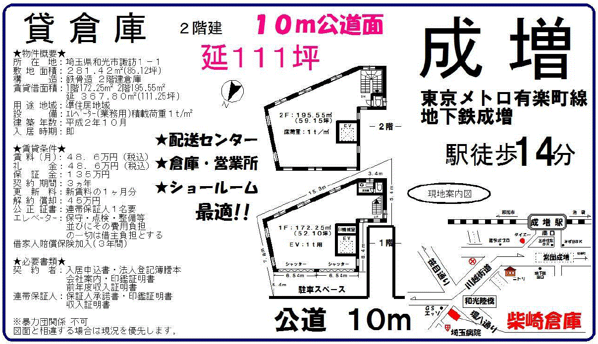 | 沿線/駅 | 有楽町線/地下鉄成増駅 徒歩14分 | 高速道路出入口 | 東京外環自動車道 和光 |