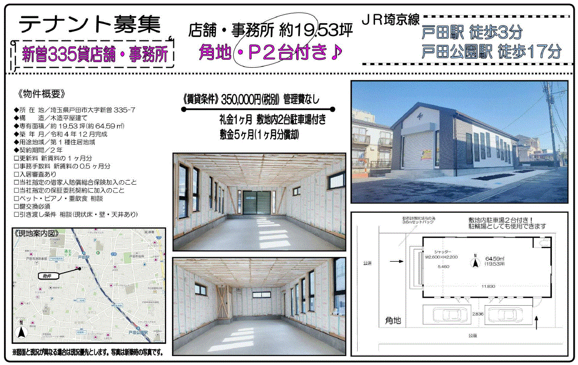 | 沿線/駅 | 埼京線/戸田駅 徒歩3分 | 高速道路出入口 | |