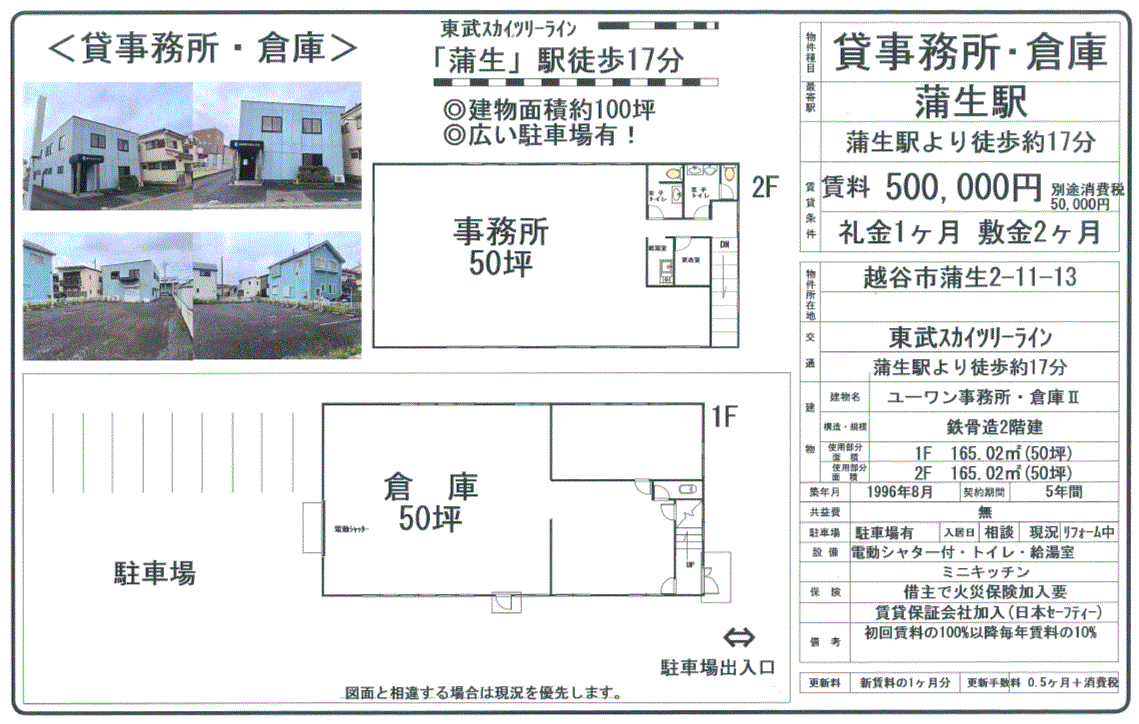 | 設備関連 | 電気引き込み有 電動シャッター 上水道 流し台 給湯 トイレ | ||