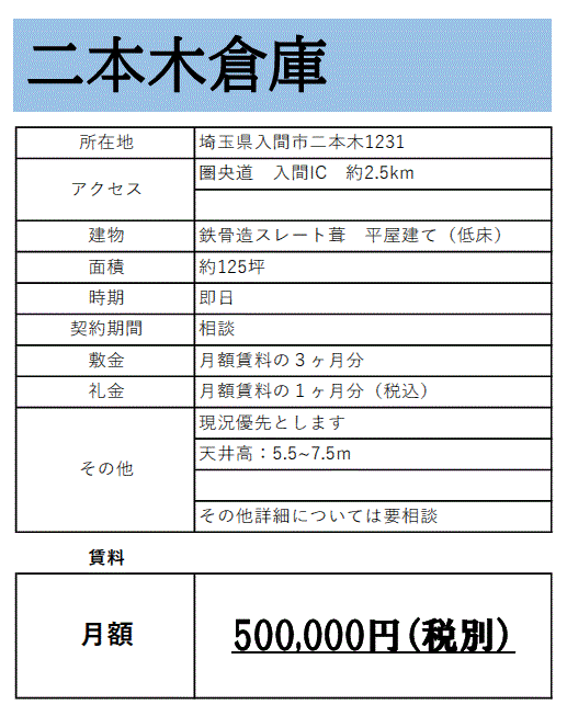 | 物件番号 | 4069133 | 物件種目 | 倉庫 |