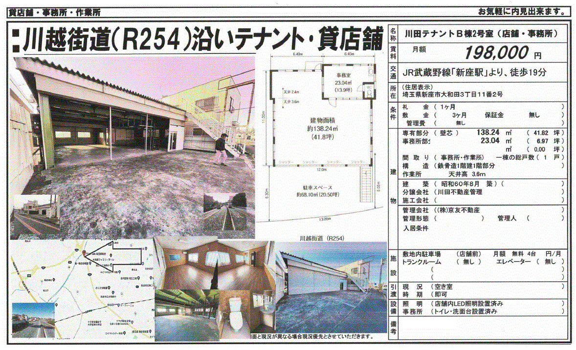| 沿線/駅 | 武蔵野線/新座駅 徒歩19分 | 高速道路出入口 | |