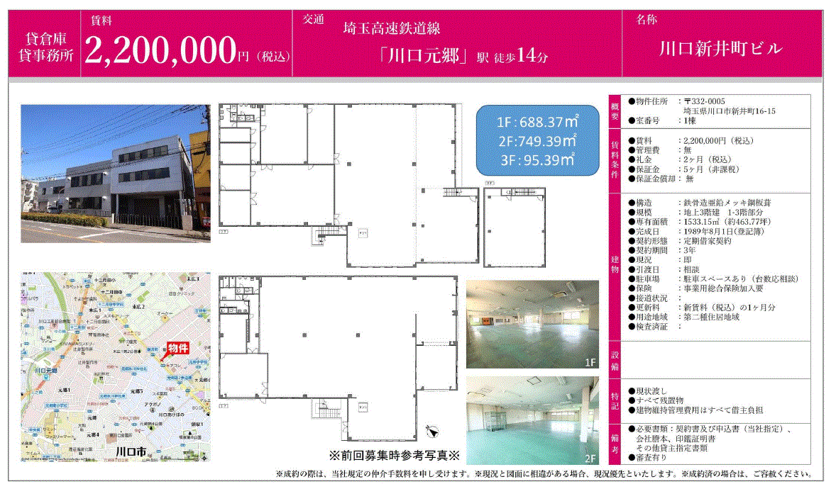 | 建物面積 | 1,533.15m²/463.78坪 | 構造/階数 | 鉄骨造/3階建ての1~3階部分 |