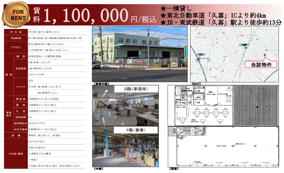 | 沿線/駅 | 湘南新宿ライン/久喜駅 徒歩13分 | 高速道路出入口 | |
