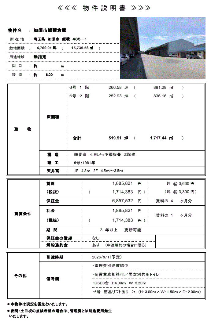 | 物件番号 | 4070064 | 物件種目 | 倉庫 |