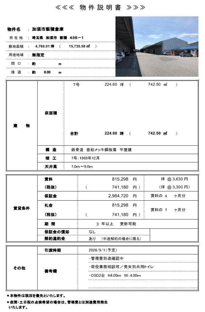 | 物件番号 | 4070065 | 物件種目 | 倉庫 |