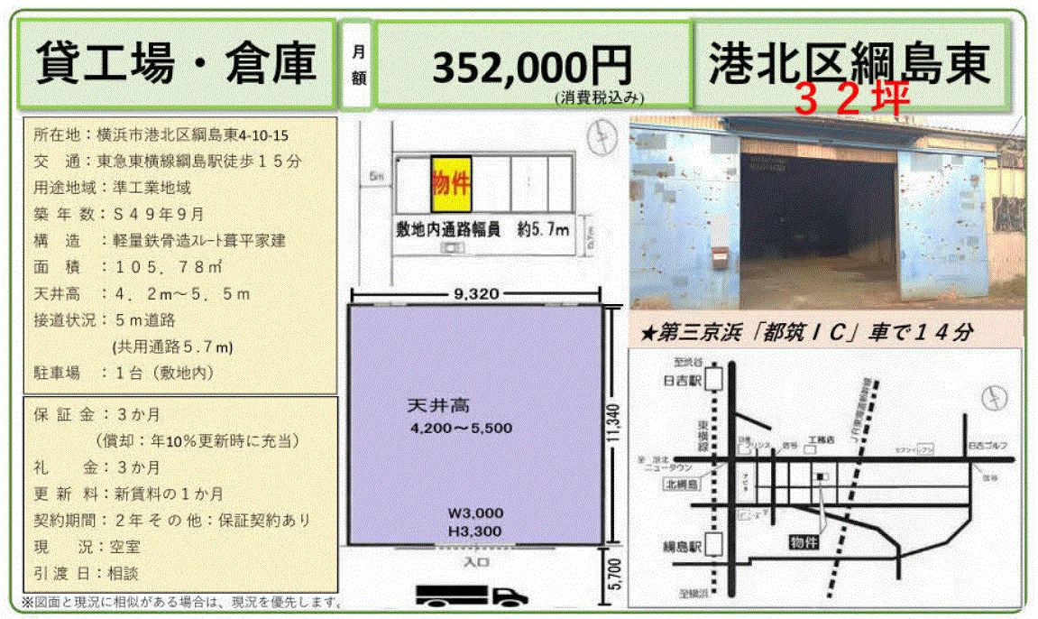 *天井高4.2m~5.5m *償却:年10%(更新時充当) *現況有姿 |