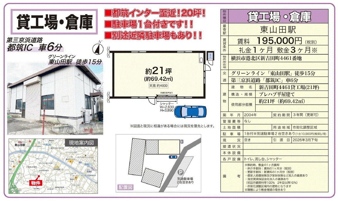 横浜グリー/東山田駅 徒歩14分 第三京浜道路「都筑IC」車6分 |
