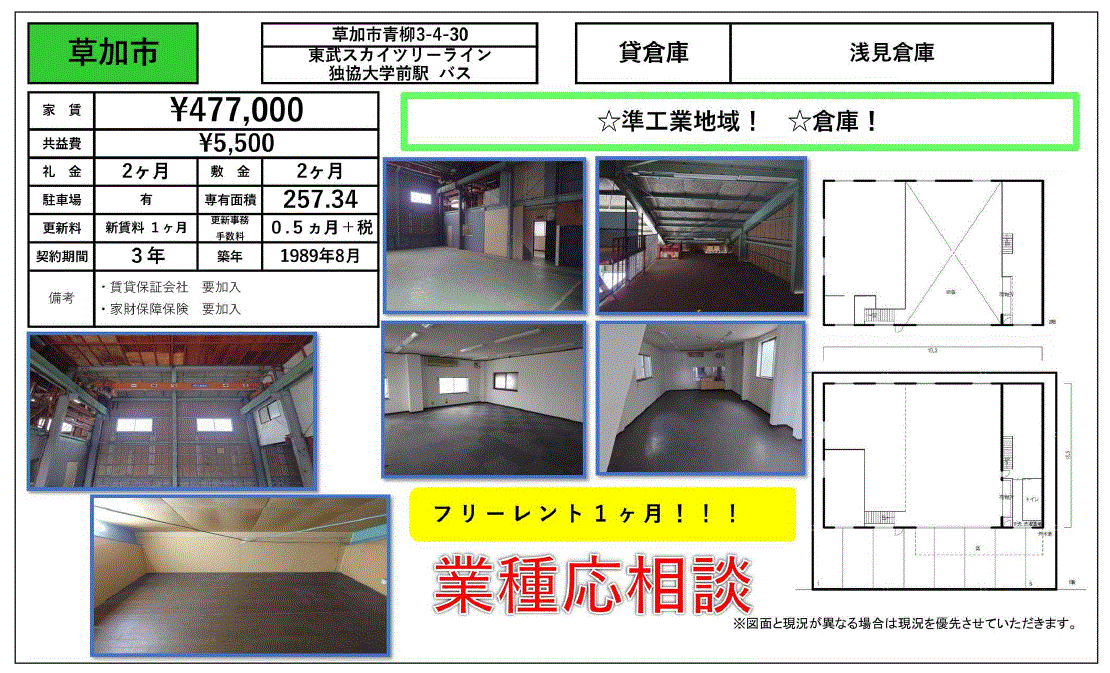 必ずしも営業可能な業種とは限りませんので用途地域の制限等弊社担当までご確認ください。