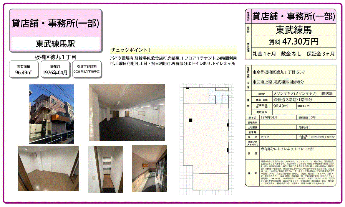 | 沿線/駅 | 東武東上線/東武練馬駅 徒歩8分 | 高速道路出入口 | |