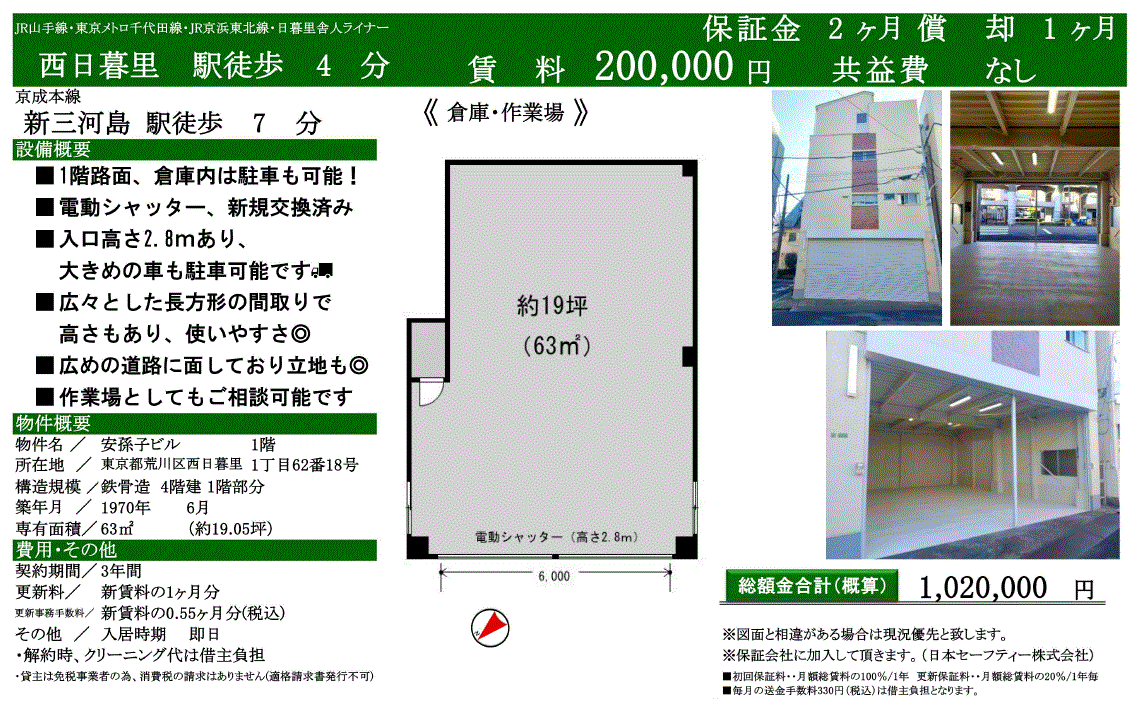 物件についての質問等は必ず弊社(三基建設)TEL 03-5200-0999 までご連絡ください。