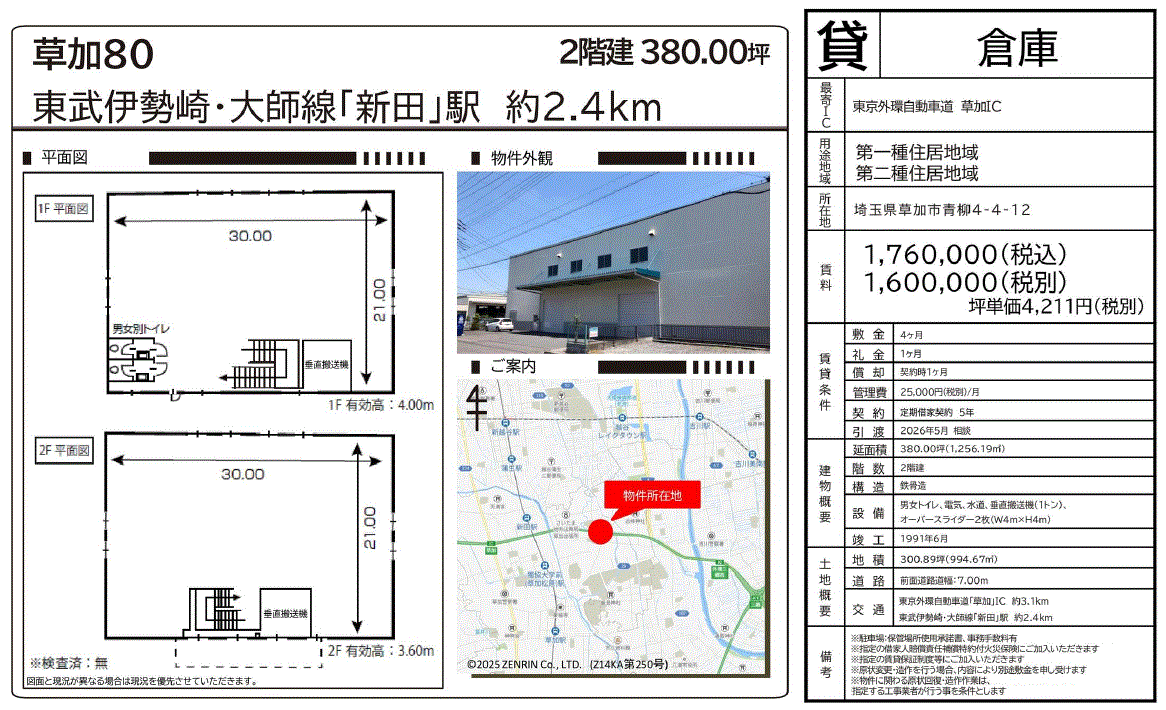 | 物件番号 | 4054400 | 物件種目 | 倉庫 |