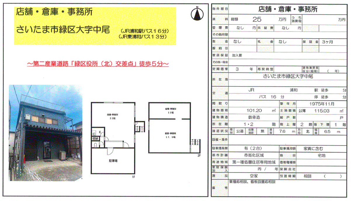 *3年定期建物賃貸借契約(再契約可) *看板設置可能 *内外装相談可能 *保証会社加入要 *保険加入要 |