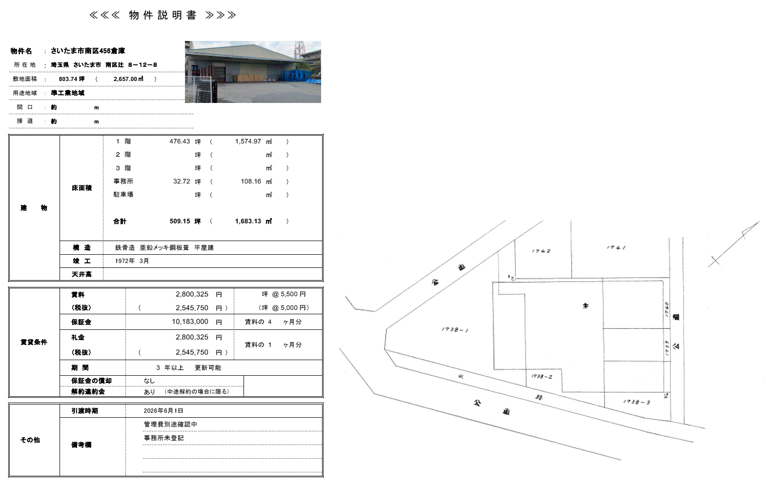 *事務所未登記 *火災保険加入要 *現況有姿 |
