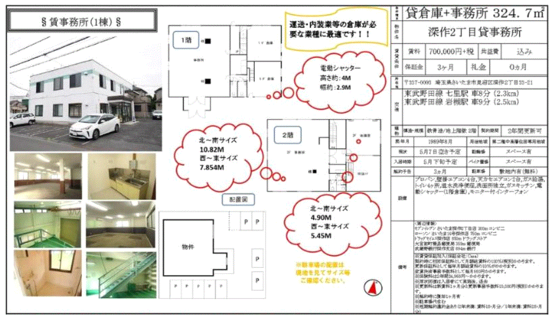 | 沿線/駅 | 東武野田線/七里駅 徒歩20分以上 | 高速道路出入口 | |