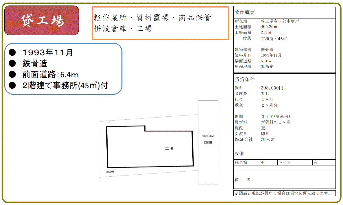 | 物件番号 | 4069989 | 物件種目 | 工場 |