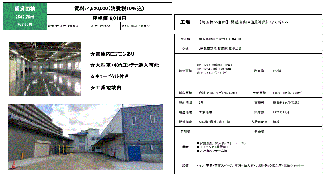| 賃料(月額) | 462万円(坪単価:6,018円)消費税込み | ||