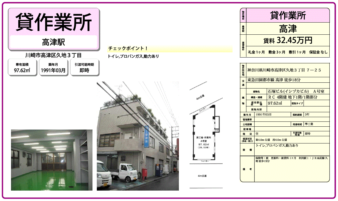 | 沿線/駅 | 田園都市線/高津駅 徒歩18分 | 高速道路出入口 | |