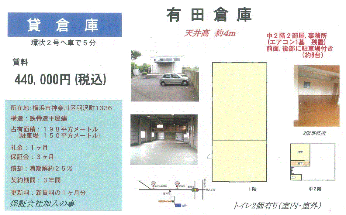 | 沿線/駅 | 相鉄新横浜/羽沢横浜国大駅 徒歩18分 | 高速道路出入口 | |