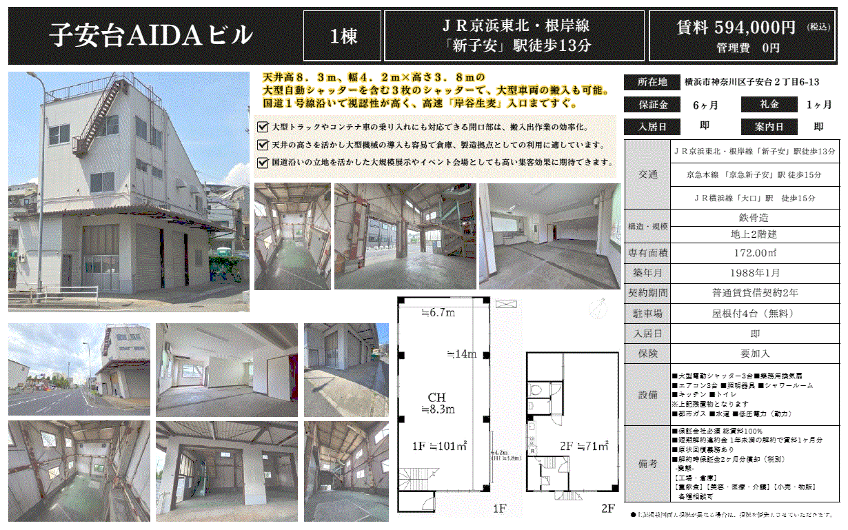 *1階天井高8.3m *保証会社加入要 *借家人賠償責任保険加入要 *中途解約時、解約違約金あり |