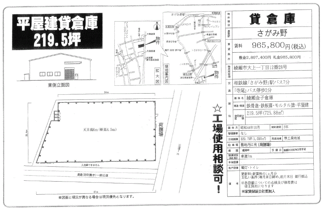 *天井高6m *保証会社加入要 *各設備についての点検及び修理費は借主負担となります。 |