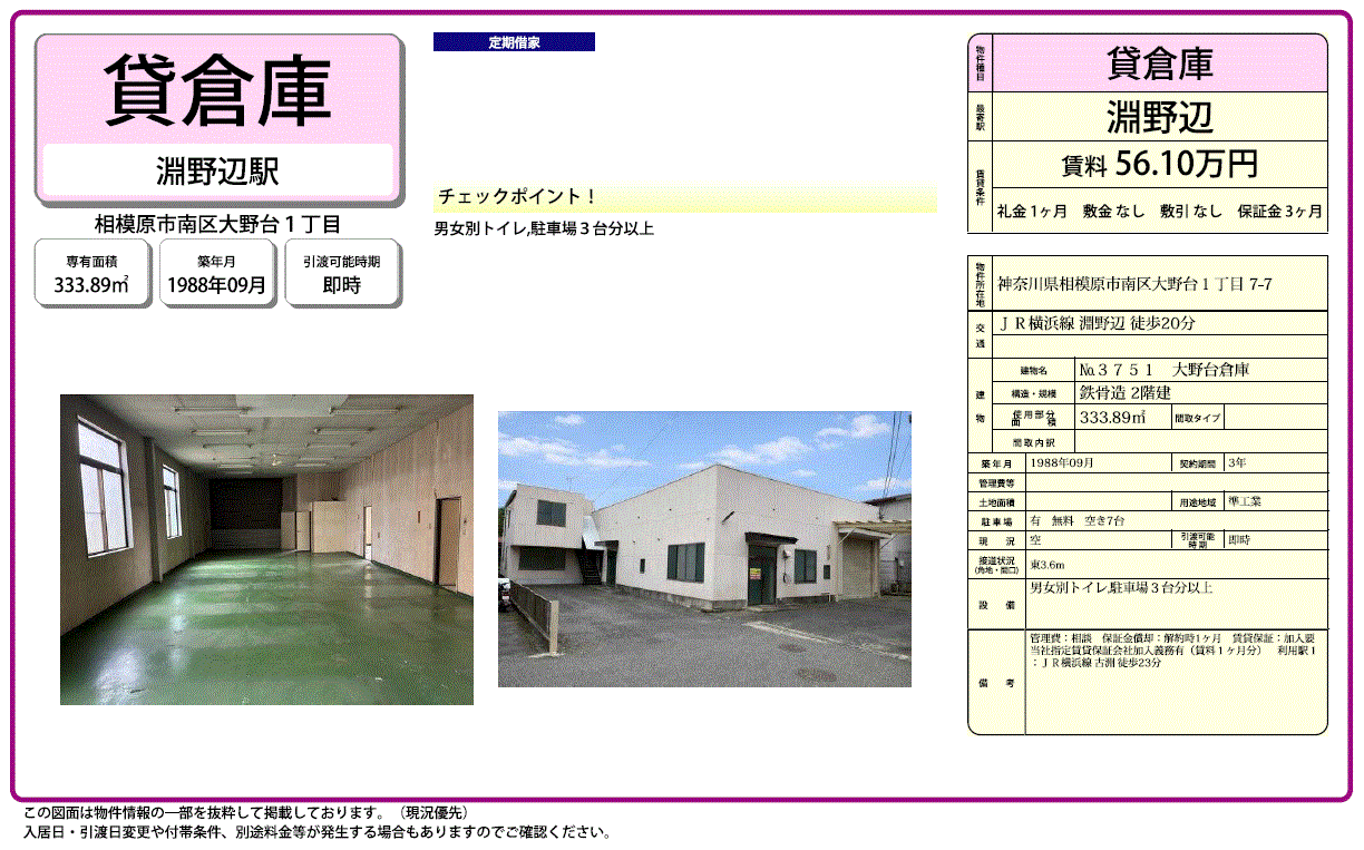 | 物件番号 | 6037236 | 物件種目 | 倉庫 |