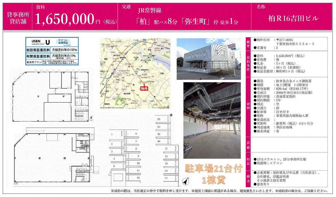 | 賃料(月額) | 165万円(坪単価:6,648円)消費税込み | ||