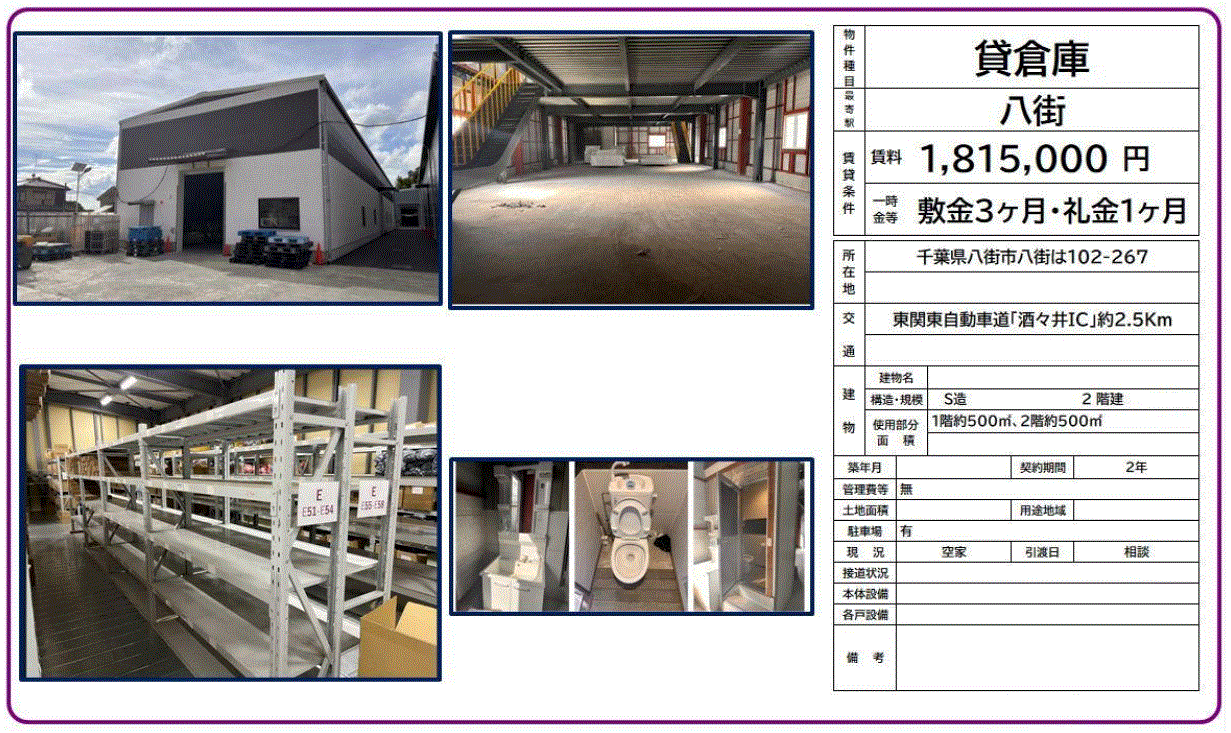 | 物件番号 | 7015221 | 物件種目 | 倉庫 |