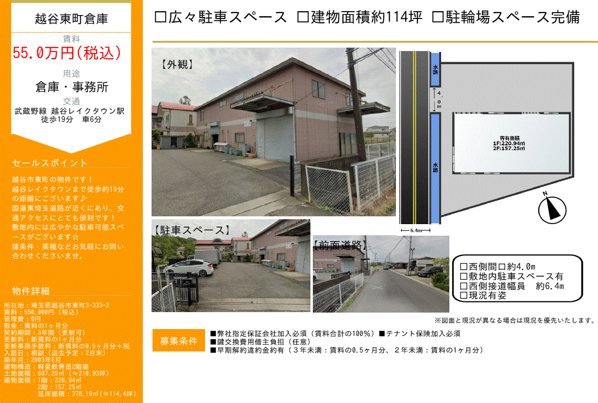 ★おすすめポイント★:2階建貸倉庫 駐車スペース付