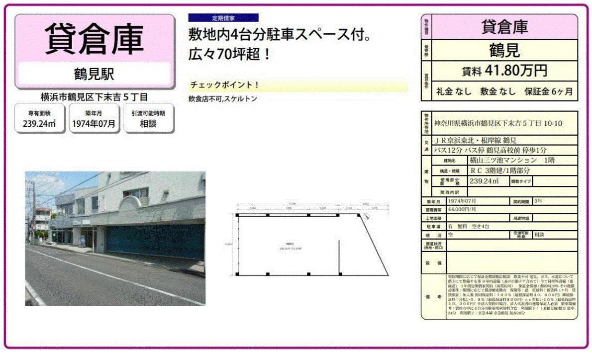 保証金:6ヶ月 解約引き:30% |